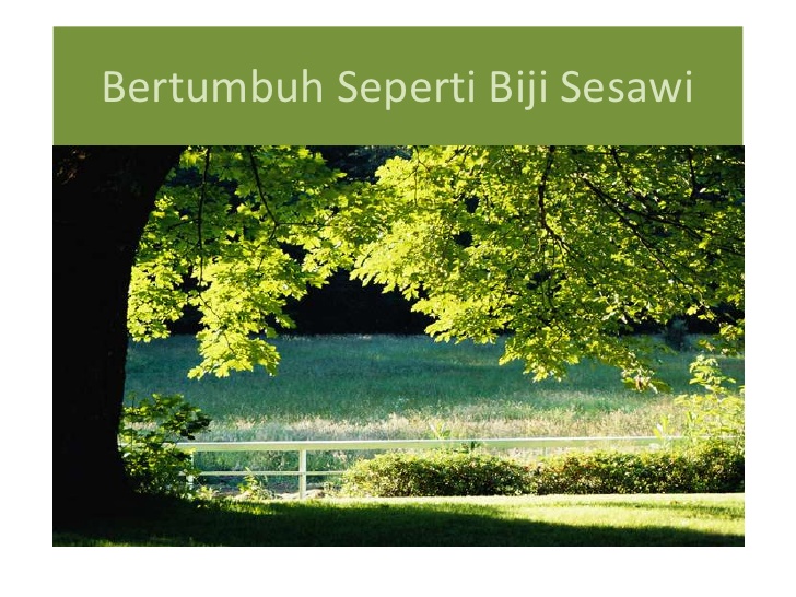 dikatakan biji yang paling kecil namun mampu bertumbuh lebih besar dari sayuran lainnya bahkan menjadi pohon tempat burung-burung bersarang pada cabang-cabangnya.