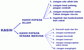 Perintah Allah no.5 sd 10 berhubungan dengan kasihilah sesama dan mengasihi diri sendiri bila kita menuruti ke 6 perintah Allah berikutnya.
