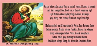 Hari ini kita merenungkan bagaimana perjalanan iman Markus dan semoga menginspirasikan kita mau berbuat seperti Markus memberitakan Injil dan membawa banyak orang kepada Yesus.
