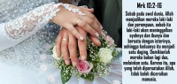 Kata Yesus kepada mereka: “Justru karena ketegaran hatimulah maka Musa menuliskan perintah ini untuk kamu. Sebab pada awal dunia, Allah menjadikan mereka laki-laki dan perempuan, sebab itu laki-laki akan meninggalkan ayahnya dan ibunya dan bersatu dengan isterinya, sehingga keduanya itu menjadi satu daging. Demikianlah mereka bukan lagi dua, melainkan satu.
