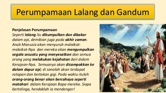 Perumpamaan lalang diantara gandum menyadarkan kita bahwa suka atau tidak suka, kita terpaksa menerima kenyataan disekitar kita ada berbagai orang jahat.