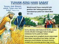 Yesus mengatakan bahwa Anak Manusia adalah Tuhan atas hari Sabat, ketika orang Farisi mengkritik murid2 Yesus memetik dan makan bulir2 gandum pada hari Sabat.