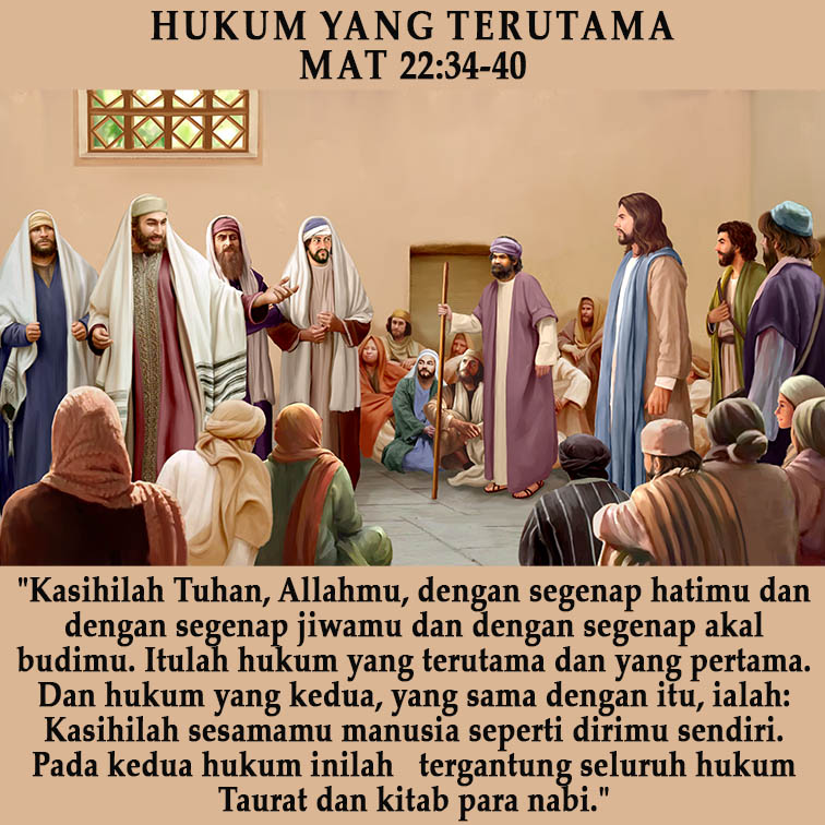 Yesus menjawab kedua hukum dalam kitab Taurat dan kitab para nabi adalah: