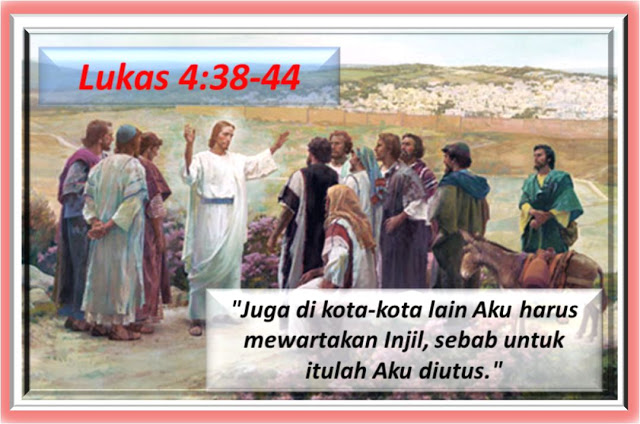 Yesus berkata kepada mereka: “Juga di kota-kota lain Aku harus memberitakan Injil Kerajaan Allah sebab untuk itulah Aku diutus.”