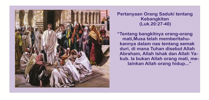 Semoga kita tidak mencontoh sikap orang Saduki tetapi hendaknya kita mau menerima firman Tuhan dengan segenap hati dan segenap pikiran akalbudi kita.