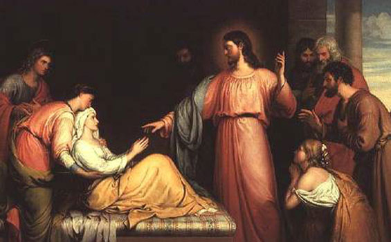 Yesus membangunkan dia, lalu lenyaplah demamnya. Kemudian perempuan itu melayani mereka.