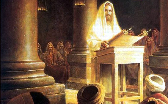 Pada hari Sabat Yesus mulai mengajar di rumah ibadat dan jemaat yang besar takjub ketika mendengar Dia