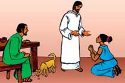 Yesus berkata kepadanya: “Biarlah anak-anak kenyang dahulu, sebab tidak patut mengambil roti yang disediakan bagi anak-anak dan melemparkannya kepada anjing.” Tetapi perempuan itu menjawab: “Benar, Tuhan. Tetapi anjing yang di bawah meja juga makan remah-remah yang dijatuhkan anak-anak.”