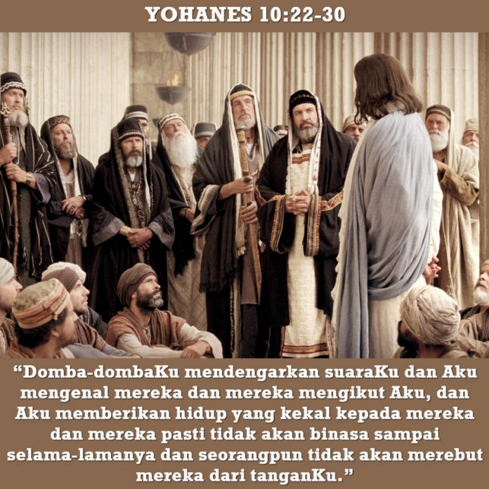 Yesus menjawab mereka: “Aku telah mengatakannya kepada kamu, tetapi kamu tidak percaya; pekerjaan-pekerjaan yang Kulakukan dalam nama Bapa-Ku, itulah yang memberikan kesaksian tentang Aku tetapi kamu tidak percaya, karena kamu tidak termasuk domba-domba-Ku.