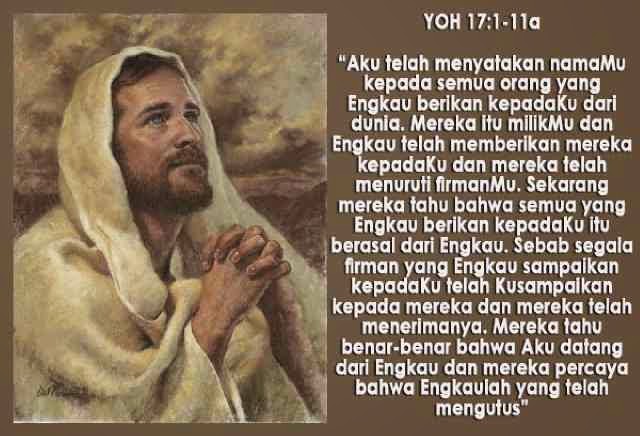 Aku berdoa untuk mereka. Bukan untuk dunia Aku berdoa, tetapi untuk mereka, yang telah Engkau berikan kepadaKu, sebab mereka adalah milikMu dan segala milikKu adalah milikMu dan milikMu adalah milikKu, dan Aku telah dipermuliakan di dalam mereka.
