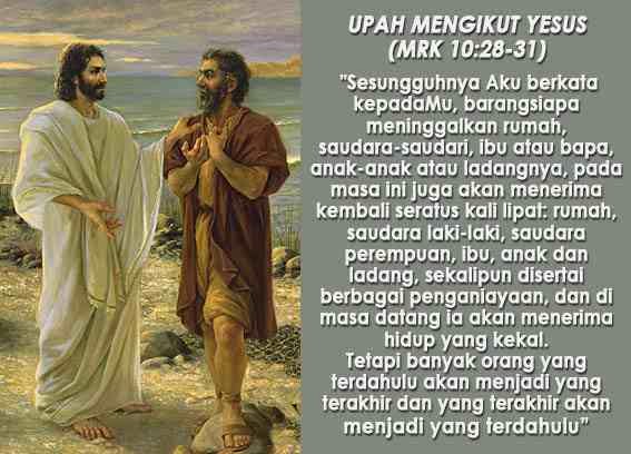 Tentu saja ada upahnya mengikuti Yesus dan ini adalah janji Yesus kepada setiap orang yang mengikutiNYa.