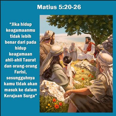 Aku berkata kepadamu: Jika hidup keagamaanmu tidak lebih benar dari pada hidup keagamaan ahli-ahli Taurat dan orang-orang Farisi, sesungguhnya kamu tidak akan masuk ke dalam Kerajaan Sorga.