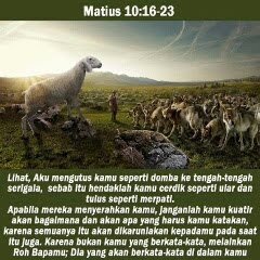 Lihat, Aku mengutus kamu seperti domba ke tengah-tengah serigala, sebab itu hendaklah kamu cerdik seperti ular dan tulus seperti merpati.