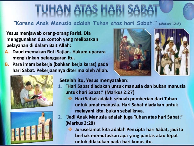 artinya : bukan menjalankan peraturan hari sabat yang menjadi fokus perhatian yang penting melainkan adakah belas kasihan di dalam diri orang-orang yang mentaati peraturan tersebut.