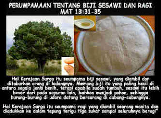 Bacaan Injil Matius minggu ini mengenai perumpamaan tentang Kerajaan Sorga seperti biji sesawi dan seperti ragi.