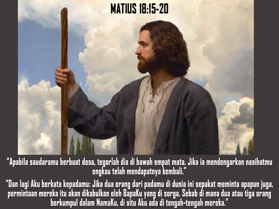 Aku berkata kepadamu: jika dua orang dari padamu di dunia ini sepakat meminta apapun juga, permintaan mereka itu akan dikabulkan oleh Bapa-Ku yang di sorga sebab di mana dua atau tiga orang berkumpul dalam Nama-Ku, di situ Aku ada di tengah-tengah mereka.
