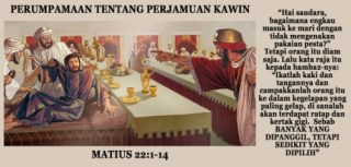 Namun ada satu orang tidak berpakaian pesta diantara tamu-tamu yang hadir dalam perjamuan kawin dan raja menegur tetapi orang itu diam tidak menjawab.