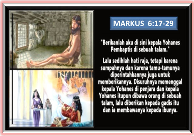 Semoga kita tidak berlaku seperti raja Herodes dan juga tidak bersikap seperti Herodias yang tidak menolak dosa berzinah bahkan ia ikut merancang pembunuhan Yohanes Pembaptis.