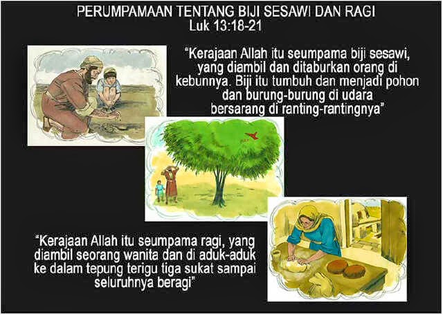 Injil hari ini mengenai dua perumpamaan untuk menggambarkan Kerajaan Allah itu seumpama biji sesawi dan ragi diaduk ke dalam tepung terigu.