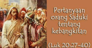 Injil Lukas hari ini mengenai orang Saduki bertanya tentang kebangkitan kepada Yesus karena mereka tidak mengakui adanya kebangkitan.