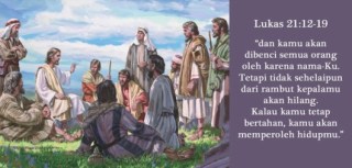 Kamu akan dibenci semua orang oleh karena namaKu. Tetapi tidak sehelaipun dari rambut kepalamu akan hilang. Kalau kamu tetap bertahan, kamu akan memperoleh hidupmu.