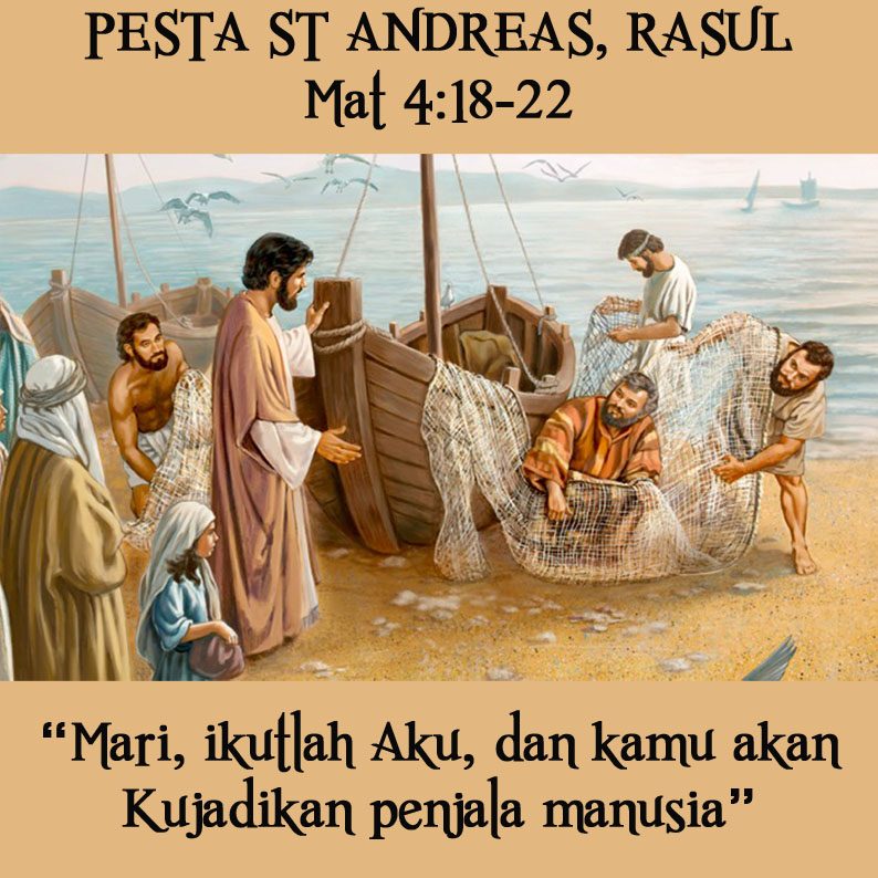 Hari ini dalam kalender liturgi katolik di tetapkan sebagai Pesta S.Andreas, Rasul.