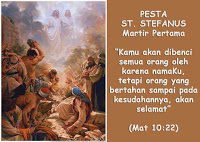 Gereja Katolik menghormati Stefanus dengan menetapkan hari ini sebagai pesta St Stefanus, Martir Pertama.