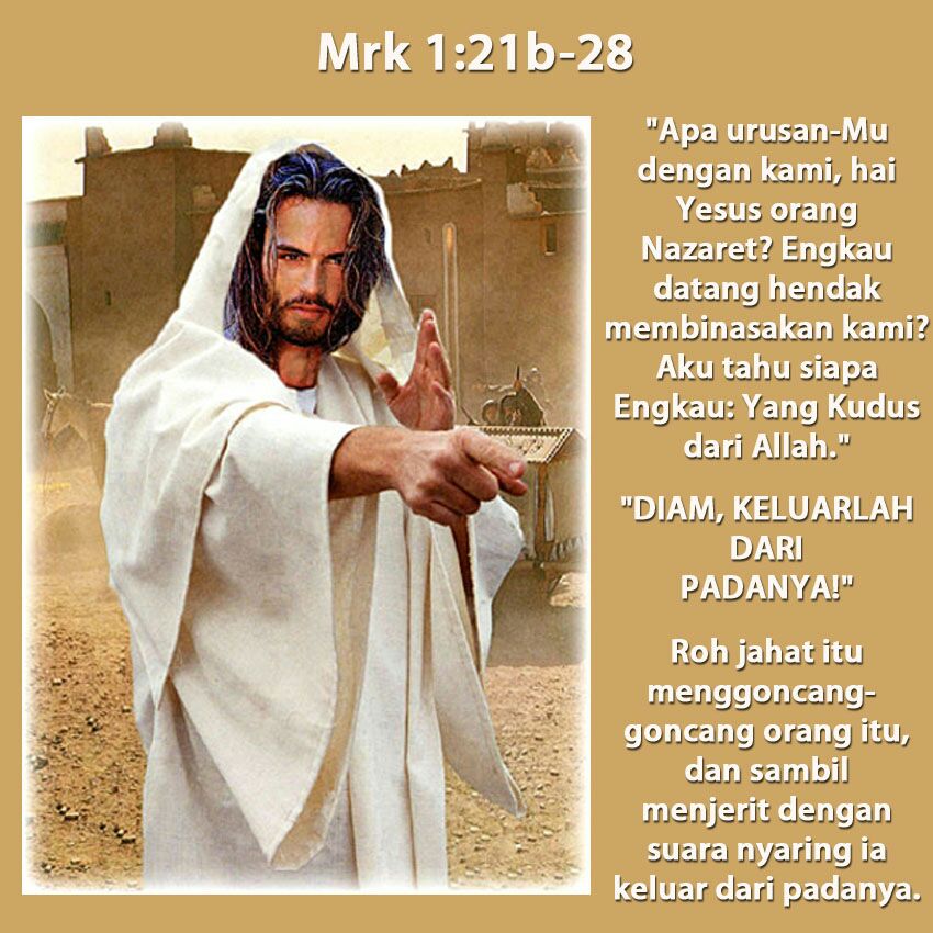 Bacaan Injil hari ini mengisahkan tentang Yesus mengajar dan mengusir roh jahat di rumah ibadat di Kapeenaum.