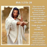 Kuasa Tuhan bukan hanya nampak pada pengajaran yang disampaikan Yesus tetapi nampak juga saat Yesus mengusir roh jahat yang merasuki seseorang di rumah ibadat (ayat 23-26).