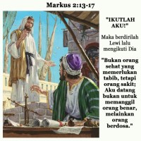 Pada waktu ahli-ahli Taurat dari golongan Farisi melihat, bahwa Ia makan dengan pemungut cukai dan orang berdosa itu, berkatalah mereka kepada murid-muridNya: “Mengapa Ia makan bersama-sama dengan pemungut cukai dan orang berdosa?”