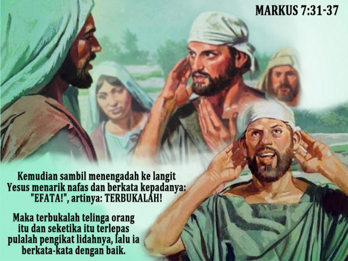 Bacaan Injil hari ini mengenai Yesus sembuhkan seorang yang tuli dan gagap dengan cara yang luarbiasa sehingga banyak orang kagum melihatnya.