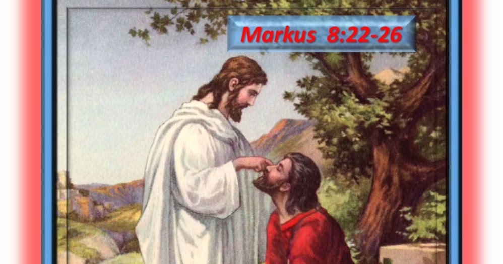 Yesus memegang tangan orang buta itu dan membawa dia ke luar kampung. Lalu Ia meludahi mata orang itu dan meletakkan tanganNya atasnya, dan bertanya: “Sudahkah kaulihat sesuatu?” Orang itu memandang ke depan, lalu berkata: “Aku melihat orang, sebab melihat mereka berjalan-jalan, tetapi tampaknya seperti pohon-pohon.”