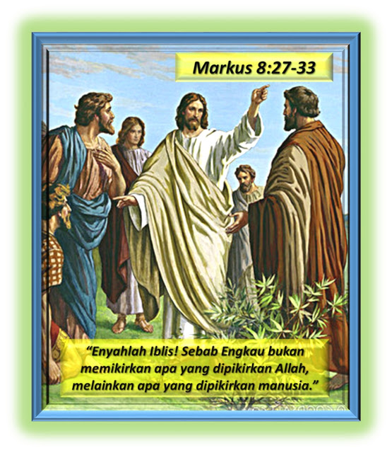 Maka berpalinglah Yesus dan sambil memandang murid-muridNya Ia memarahi Petrus, kataNya: “Enyahlah Iblis, sebab engkau bukan memikirkan apa yang dipikirkan Allah, melainkan apa yang dipikirkan manusia.”