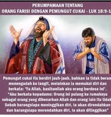 Bacaan Injil Lukas hari ini, Yesus memberikan perumpamaan doa orang farisi dan doa pemungut cukai, untuk menjelaskan tentang orang yang menganggap dirinya benar dan