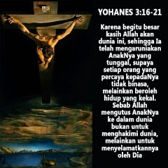 Karena begitu besar kasih Allah akan dunia ini, sehingga Ia telah mengaruniakan AnakNya yang tunggal, supaya setiap orang yang percaya kepadaNya tidak binasa, melainkan beroleh hidup yang kekal.
