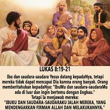 Yesus menjawab mereka: “IbuKu dan saudara-saudaraKu ialah mereka, yang mendengarkan Firman Allah dan melakukannya.”