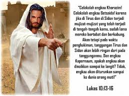 Celakalah engkau Khorazim! Celakalah engkau Betsaida! Karena jika di Tirus dan di Sidon terjadi mujizat-mujizat yang telah terjadi di tengah-tengah kamu, sudah lama mereka bertobat dan berkabung.