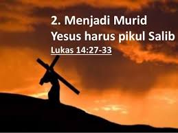 Barangsiapa tidak memikul salibnya dan mengikut Aku, ia tidak dapat menjadi muridKu. Demikian pulalah tiap-tiap orang di antara kamu, yang tidak melepaskan dirinya dari segala miliknya, tidak dapat menjadi muridKu.