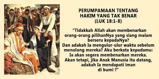 Tidakkah Allah akan membenarkan orang-orang pilihanNya yang siang malam berseru kepadaNya? Dan adakah Ia mengulur-ulur waktu sebelum menolong mereka? Aku berkata kepadamu: Ia akan segera membenarkan mereka. Akan tetapi, jika Anak Manusia itu datang, adakah Ia mendapati iman di bumi?