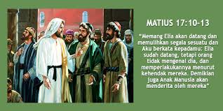 Jawab Yesus: “Memang Elia akan datang dan memulihkan segala sesuatu dan Aku berkata kepadamu: Elia sudah datang, tetapi orang tidak mengenal dia, dan memperlakukannya menurut kehendak mereka. Demikian juga Anak Manusia akan menderita oleh mereka.”