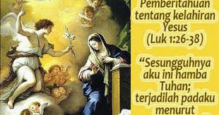 Kata malaikat itu kepadanya: “Jangan takut, hai Maria, sebab engkau beroleh kasih karunia di hadapan Allah. Sesungguhnya engkau akan mengandung dan akan melahirkan seorang anak laki-laki dan hendaklah engkau menamai Dia Yesus.
