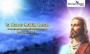 Yohanes mengatakan tentang Yesus bahwa Yesus harus makin besar tetapi aku harus makin kecil sebab Ia adalah mempelai laki-laki dan juga Anak Allah.