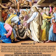 Ketika Yesus melihat iman mereka, berkatalah Ia kepada orang lumpuh itu: “Hai anakKu, dosamu sudah diampuni!” Tetapi di situ ada juga duduk beberapa ahli Taurat, mereka berpikir dalam hatinya: “Mengapa orang ini berkata begitu? Ia menghujat Allah. Siapa yang dapat mengampuni dosa selain dari pada Allah sendiri?”