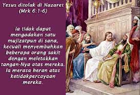 Dalam bacaan Injil Markus, dikisahkan tentang orang-orang di Nazaret semula takjub kepada Yesus namun kemudian mereka menolak Yesus setelah tahu latarbelakang keluarga Yesus.