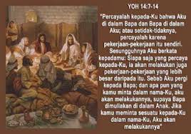 Yesus katakan kepada Filipus bahwa Aku di dalam Bapa dan Bapa di dalam Aku maka yang kamu minta dalam namaKu, Aku akan melakukannya supaya Bapa di permuliakan di dalam Anak.