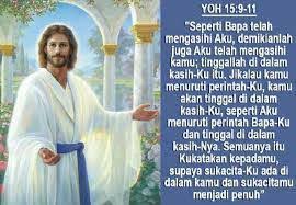 Jikalau kamu menuruti perintahKu, kamu akan tinggal di dalam kasihKu, seperti Aku menuruti perintah BapaKu dan tinggal di dalam kasihNya.