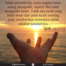 Tidak ada kasih yang lebih besar dari pada kasih seorang yang memberikan nyawanya untuk sahabat-sahabatnya. Kamu adalah sahabatKu, jikalau kamu berbuat apa yang Kuperintahkan kepadamu.