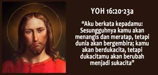 Yesus mengatakan, sekarang kamu diliputi dukacita tetapi nanti hatimu akan bergembira saat aku melihat kamu lagi.