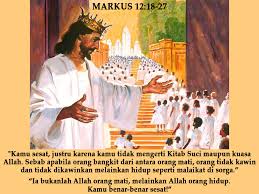 Orang Saduki berpendapat, tidak ada kebangkitan dan mengajukan pertanyaan pada Yesus tentang siapakah suami perempuan yang menikah dengan 7 orang suami pada hari kebangkitan?