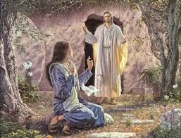 Maria berdiri dekat kubur itu dan menangis. Sambil menangis ia menjenguk ke dalam kubur itu, Kata Yesus kepadanya: “Janganlah engkau memegang Aku, sebab Aku belum pergi kepada Bapa, tetapi pergilah kepada saudara-saudaraKu dan katakanlah kepada mereka, bahwa sekarang Aku akan pergi kepada BapaKu dan Bapamu, kepada AllahKu dan Allahmu.”